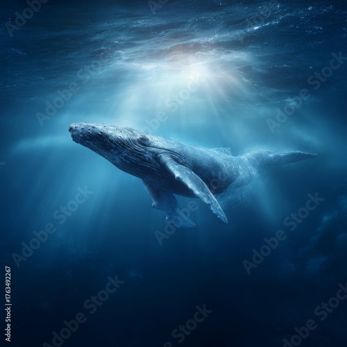 Whale in the ocean. Image of a majestic sea animal for covers, banners and other projects about the protection of whales and all marine fauna.