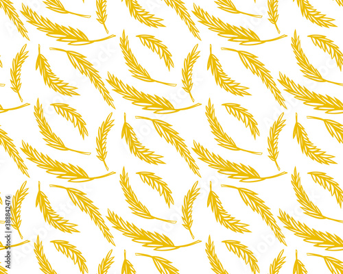 Wheat ears seamless pattern sketch style. Hand drawn texture Doodle Vector illustration