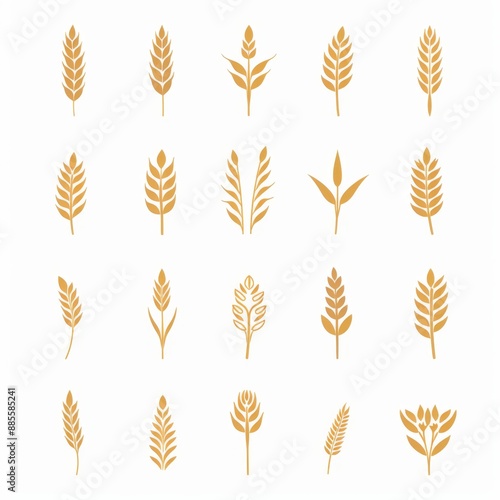 Wheat icon, rye ears sign, barley emblem, oats, cereals symbol, wheat ear, seeds, corns set