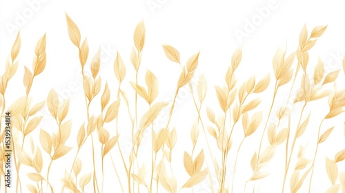 Wheat-toned, stylized leaves ascend in a delicate, organic arrangement on white background