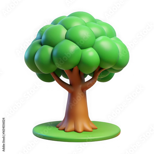 Whimsical 3D Cartoon Tree with Lush Green Foliage and a Brown Trunk on a Black Background nature isolated on a transparent background
