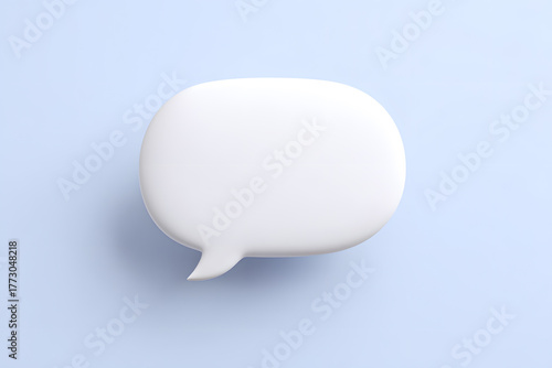 White 3D chat bubble isolated on soft background. Clean minimal communication symbol representing message, feedback, talk, dialogue, social media, online chat, community, and interaction.