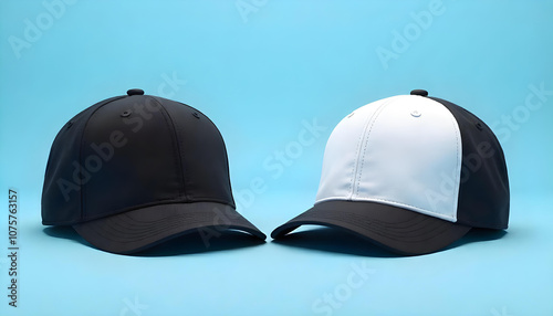 white and black cap mock up front and back