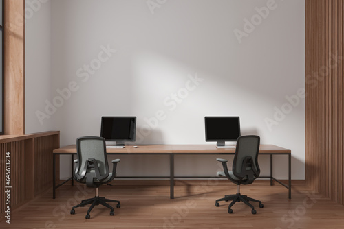 White and wooden open space office