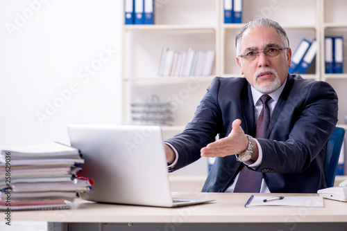 White bearded old businessman employee unhappy with excessive wo