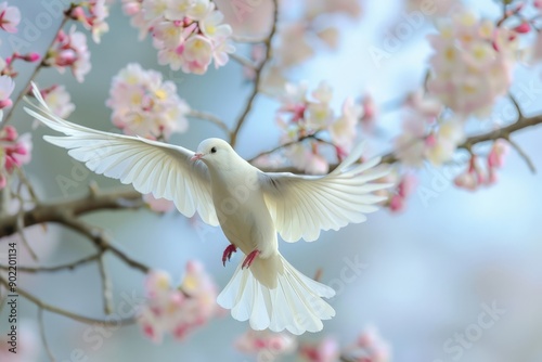 White Bird in Blossom Tree
