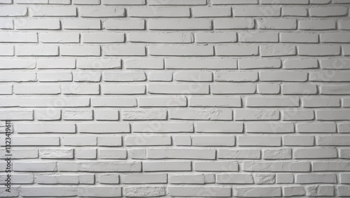 White brick wall texture with subtle shadowing, horizontal alignment, smooth surface, ideal for background use and text placement in design projects.