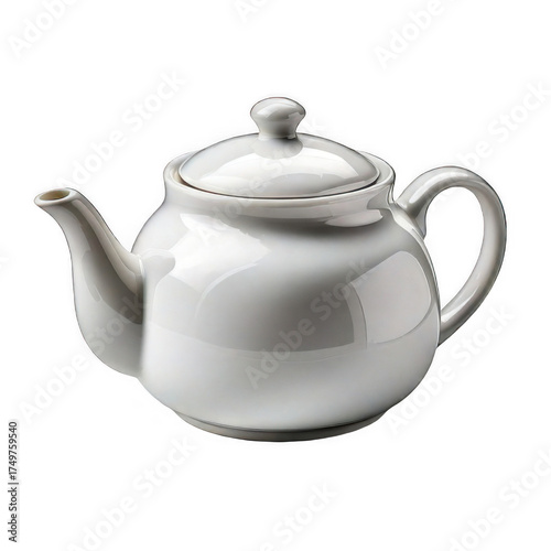 White ceramic teapot isolated on transparent background