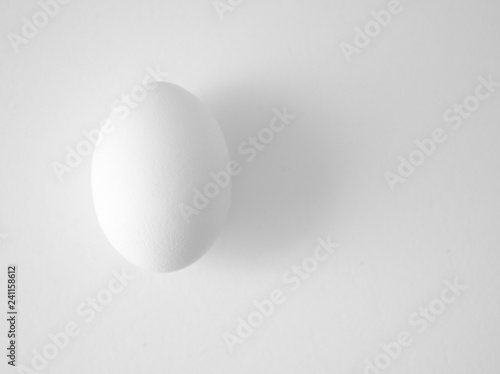 White chicken egg on white background