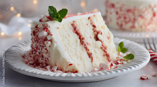 White Chocolate Cake Infused with Peppermint and Topped with Crushed Candy Canes for Holiday Celebrations