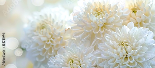 White Chrysanthemum flower closeup pastel background. with copy space image. Place for adding text or design