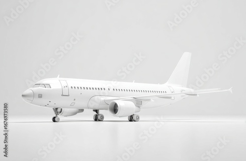 White Commercial Jet Airplane with Extended Wings and Multiple Engines on a Runway in a Clear Sky