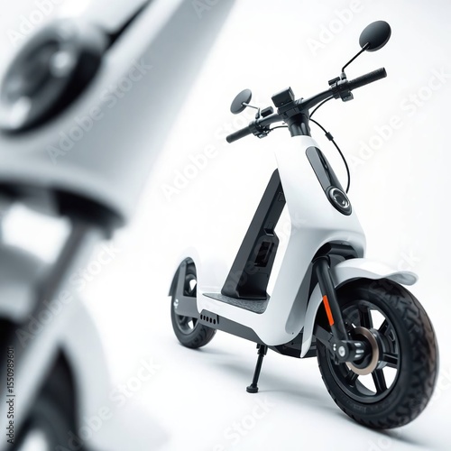 White electric scooter on white background.