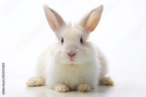 White Fluffy Bunny Rabbit Isolated on a White Background