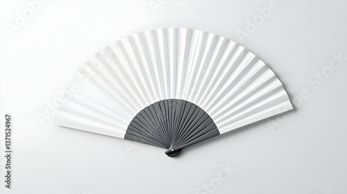 White Folded Paper Fan Object on a White Background Isolated Studio