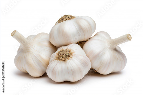 White garlic bulb isolated on a white background emphasizing natural detail. Perfect for culinary, health, and natural food-related themes.