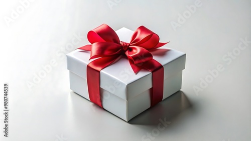 White Gift Box with Red Bow Mockup on White Background