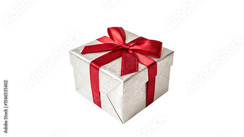 White Gift Box With Red Ribbon and Bow Symbolizing Celebration or Surprise and holidays, adding charm to festive moments. on transparent background