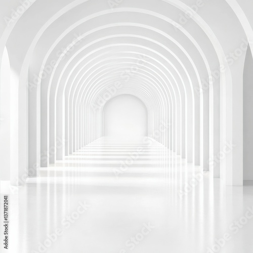 White hallway with arched ceiling