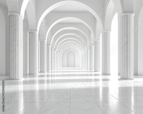 White Hallway with Arches and Columns