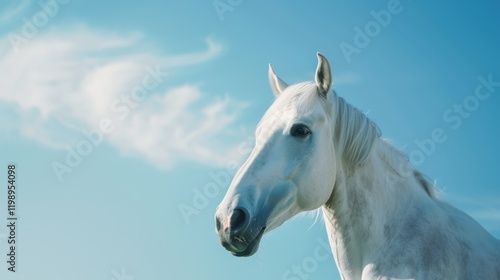 White Horse Silhouetted Against a Clear Blue Sky