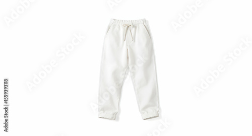 White Jogging Pants on White Background Casual Comfortable Athletic Clothing