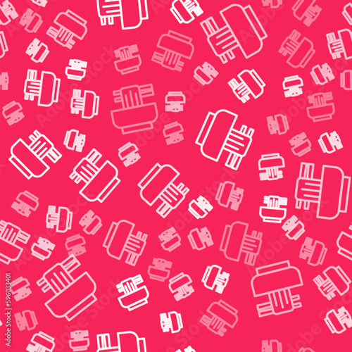 White line Asian noodles in bowl and chopsticks icon isolated seamless pattern on red background. Street fast food. Korean, Japanese, Chinese food. Vector
