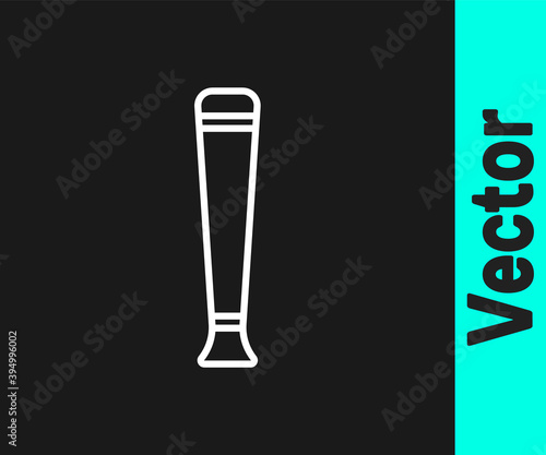 White line Police rubber baton icon isolated on black background. Rubber truncheon. Police Bat. Police equipment. Vector.