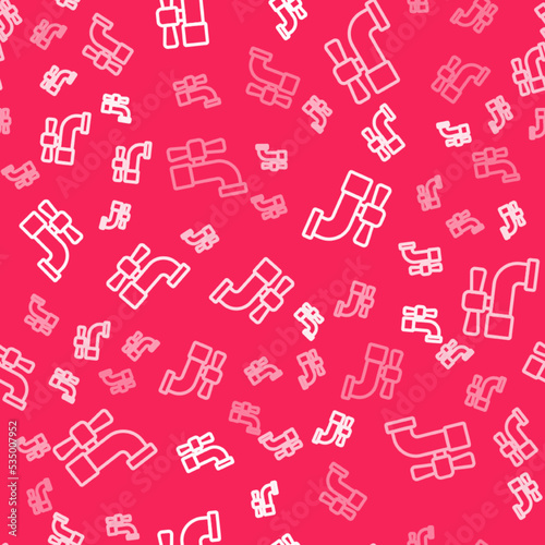 White line Water tap icon isolated seamless pattern on red background. Vector