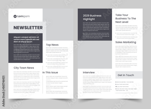 White Newsletter or magazine Layout, Monthly Newsletter, Magazine
