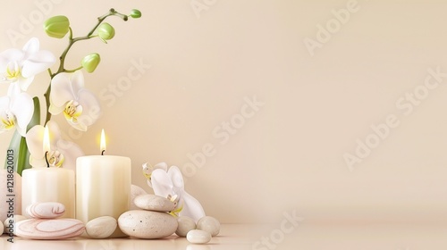 White Orchids And Candles Form Peaceful, Elegant Scene