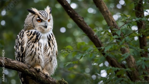 White owl on a tree in the forest