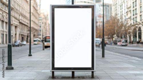 White poster mockup, bus stop kiosk with a blank advertising space, Public marketing, city advertising