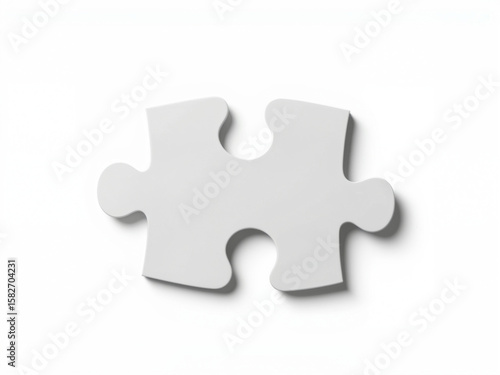 White puzzle piece on a flat surface with soft shadow isolated white background