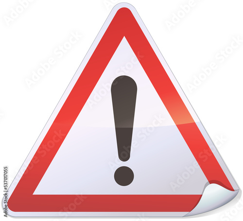 White, red and black triangular metal sticker warning of a generic hazard