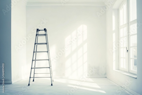 White room and stepladder, concept for starting renovation.