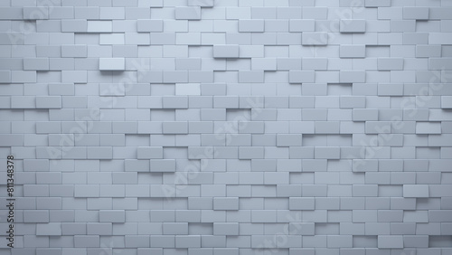 White, Semigloss Wall background with tiles. Rectangular, tile Wallpaper with 3D, Polished blocks. 3D Render