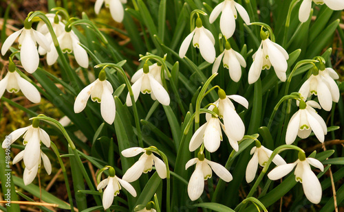 white snowdrop flowers on garden.