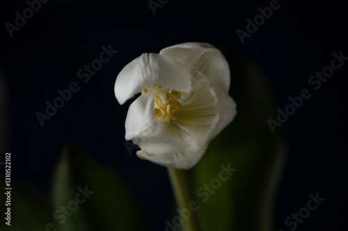 white tulip on black. Flower head