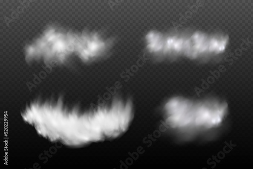 White vector cloudiness ,fog or smoke on dark checkered background.Set of Cloudy sky or smog over the city.Vector illustration.