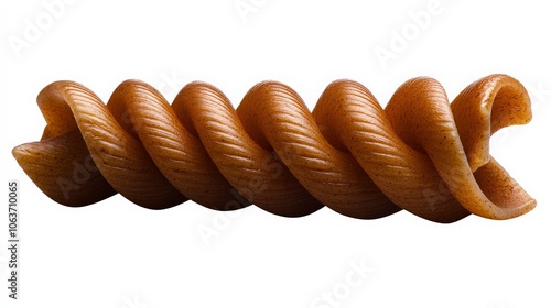 Whole Wheat Rotini Pasta: A close-up shot of a single, twisted whole wheat rotini pasta, showcasing its unique shape and rustic, earthy color. The perfect visual for healthy and delicious recipes.