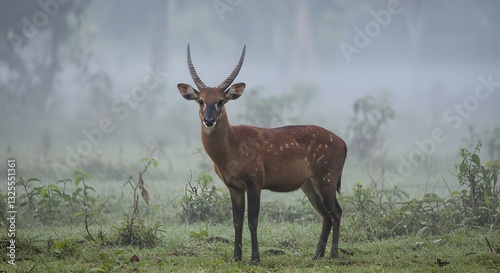 Wild Antelope in a Foggy Forest Setting Captured in Natural Light