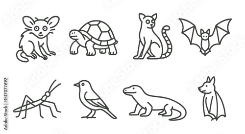 Wildlife and nature linear icon set. animal and creature minimalist symbols
