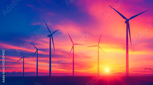wind turbines at sunset, green future, eco-friendly society, renewable resources clean energy and environmentally conscious solutions