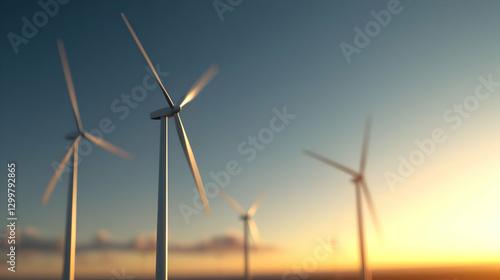 Wind Turbines Generating Power Under A Blue And Orange Sky At Sunset