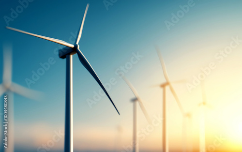 Wind turbines harnessing renewable energy against a vibrant sky during sunset, symbolizing sustainable energy and environmental conservation.