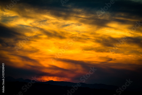 Wind turbines sunset