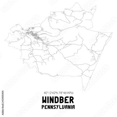 Windber Pennsylvania. US street map with black and white lines.