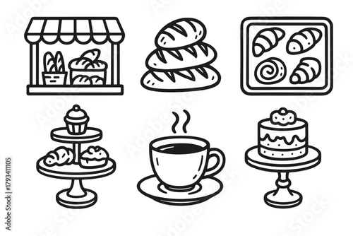 Window pastry tray vector stand view icon cake bakery cup set