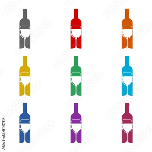 Wine bottle logo icon isolated on white background. Set icons colorful